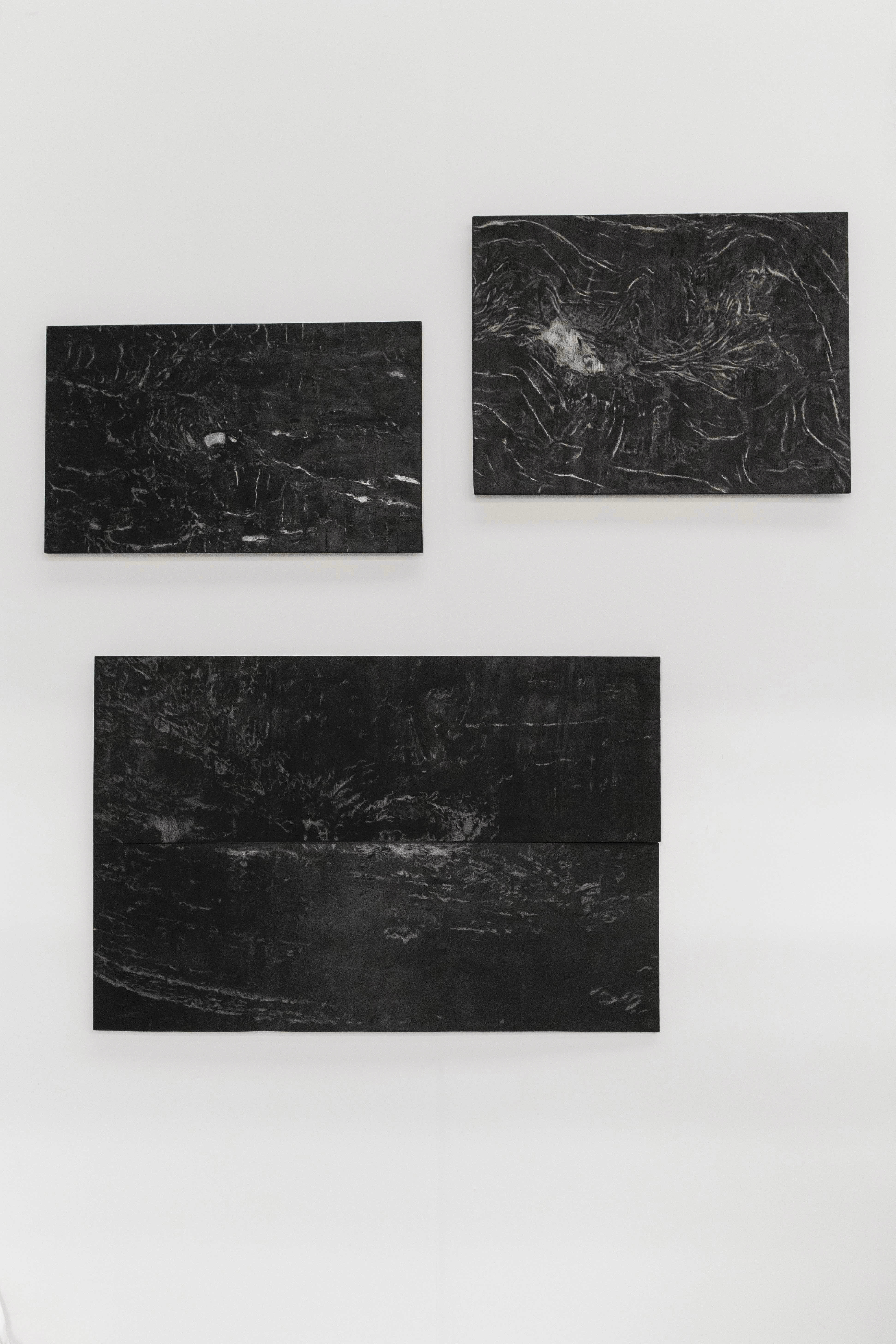 Materials: graphite drawings on burned wood